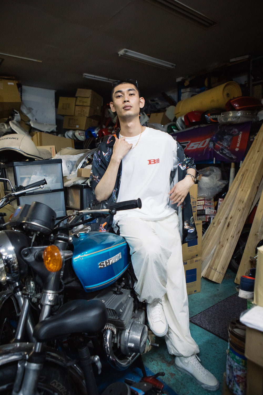 駐車場にて三段シートに特攻服を引っ掛けての1枚